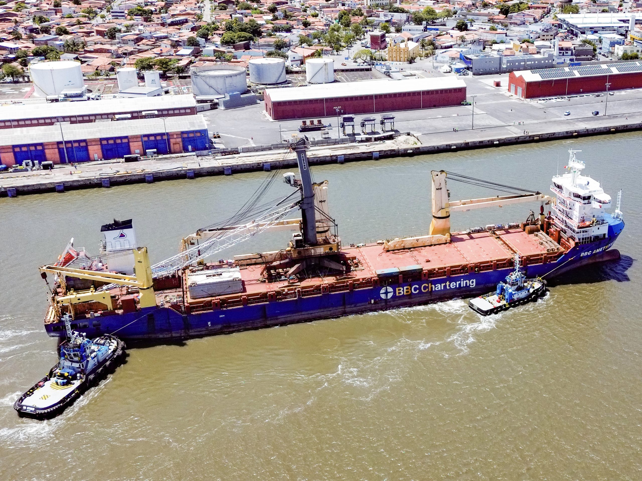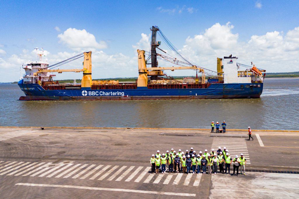 Na manhã desta terça-feira (26), chegou ao cais o navio BBC Amethyst, trazendo a bordo um moderno guindaste do tipo Mobile Harbor Crane (MHC), equipamento de última geração que irá potencializar a capacidade operacional do terminal e tem desembarque previsto para esta quarta, às 10h.