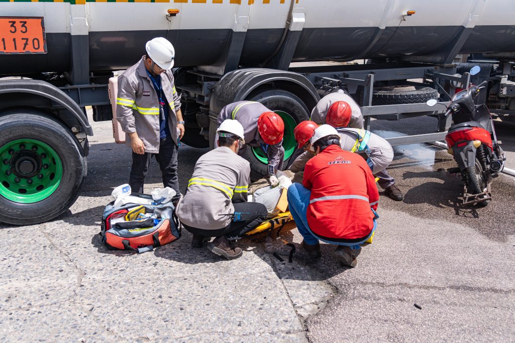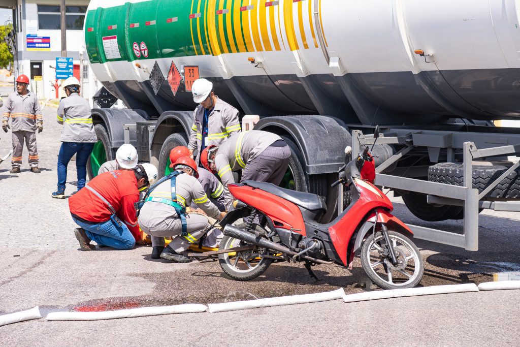 O exercício teve como premissa um acidente ocasionado pelo mal súbito do motorista de um caminhão-tanque. A simulação, levou a uma colisão com motociclista, que sofreu fratura em membro superior. O impacto resultou no rompimento de uma válvula do caminhão, provocando o vazamento de combustível na via, o que exigiu uma resposta rápida para contenção de danos ambientais.